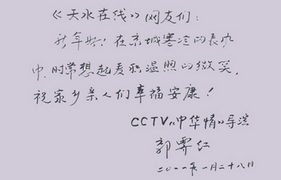 新年好!在京城寒冷的长风中,时常想起麦积温煦的微笑,祝家乡亲人们幸福安康。