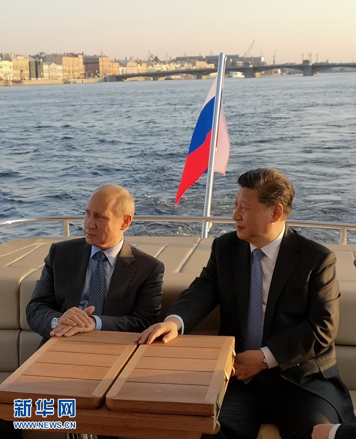 6月6日,国家主席习近平在圣彼得堡同俄罗斯总统普京再次举行会晤。普京邀请习近平共同乘船游览涅瓦河。新华社记者 李学仁 摄