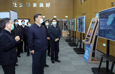 3月31日,习近平在杭州考察。这是习近平在杭州城市大脑运营指挥中心,就杭州运用城市大脑推进城市治理体系和治理能力现代化进行考察调研。