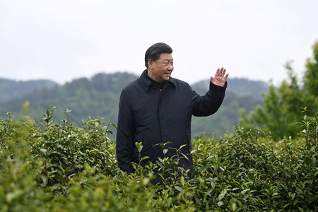 4月21日,习近平来到陕西省安康市平利县老县镇,在锦屏社区、镇卫生院、中心小学和茶园考察当地脱贫攻坚等情况。