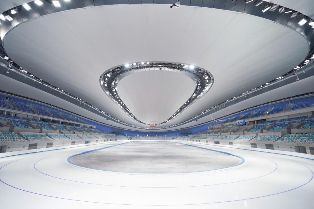这是2021年1月22日拍摄的首次制冰完成后的国家速滑馆内景。新华社记者 鞠焕宗 摄