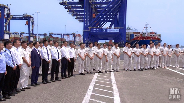 △这是当天在小铲滩港区的现场作业人员、挂职干部代表等。(总台央视记者马超拍摄)