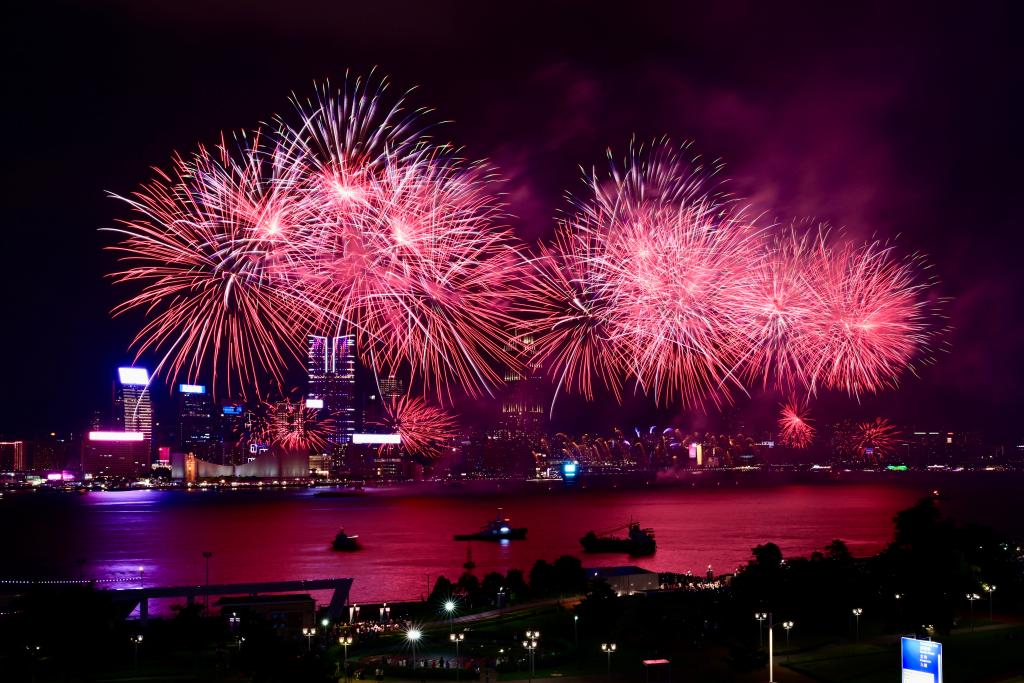 在璀璨烟花的映照下,维港两岸的大厦交相辉映,火树银花与喜悦笑容构成了一道美丽的风景。香港特区政府当晚公布的数据显示,本次烟花汇演吸引超过33万人次到场观看。