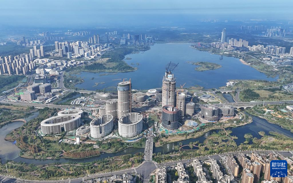 这是2024年10月17日拍摄的四川天府新区兴隆湖科学城一景(无人机照片)。新华社记者 王曦 摄