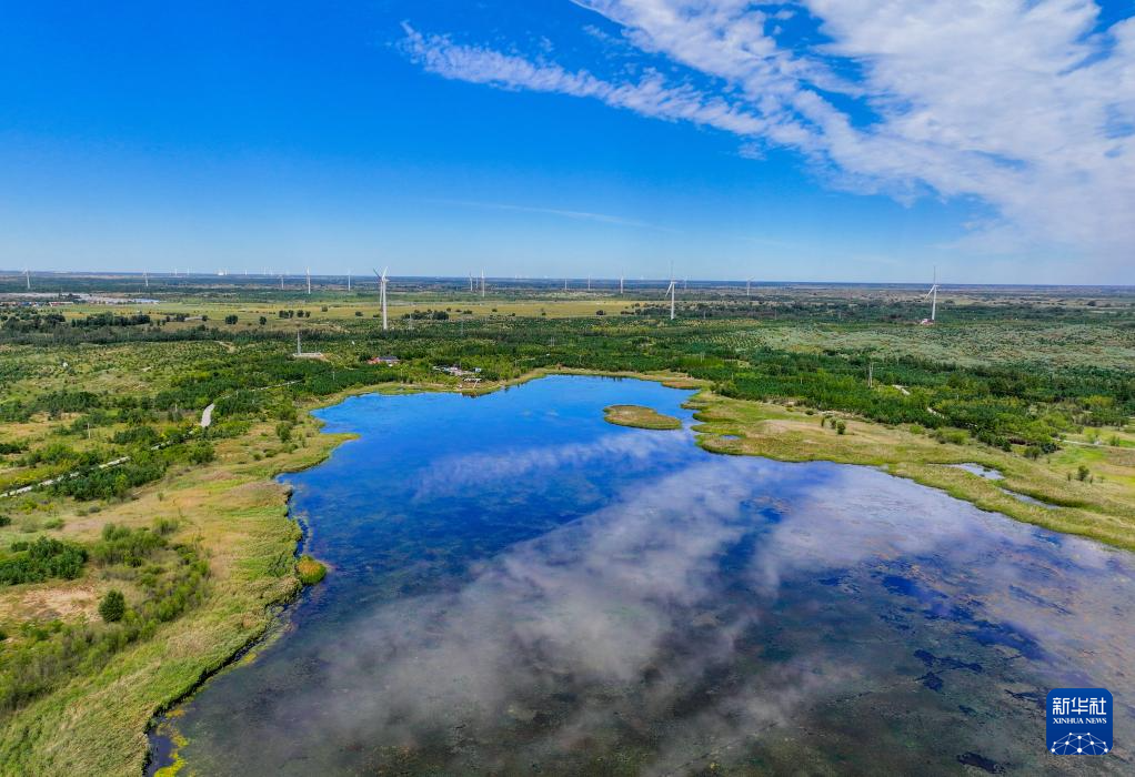 这是2023年7月6日在甘肃省甘南藏族自治州玛曲县拍摄的阿万仓湿地景色(无人机照片)。新华社记者 陈斌 摄