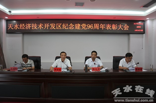 6月29日,天水经济技术开发区召开纪念建党96周年表彰大会,开发区党工委在家领导,党工委下属各基层党组织的全体党员、入党积极分子约120人参加会议。