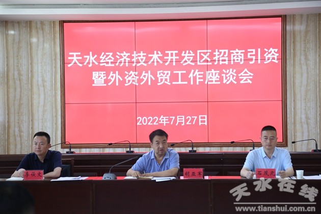 7月27日,经开区召开招商引资暨外资外贸工作座谈会。经开区党工委书记、管委会主任胡亚军主持会议并讲话,管委会副主任石茂元、李俊文,各相关部门、单位负责人,经开区各“链主”企业和外资外贸企业主要负责人参加会议。