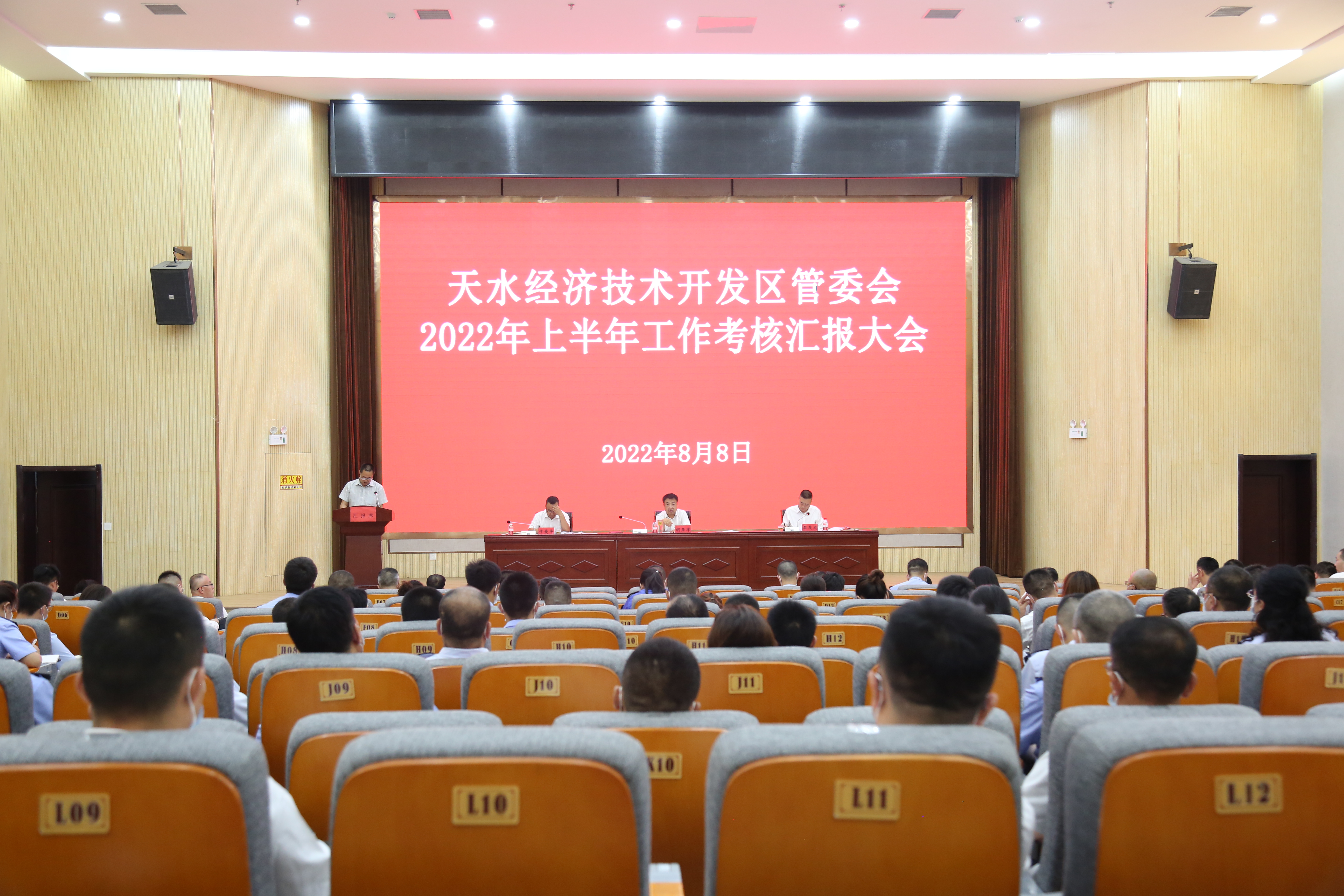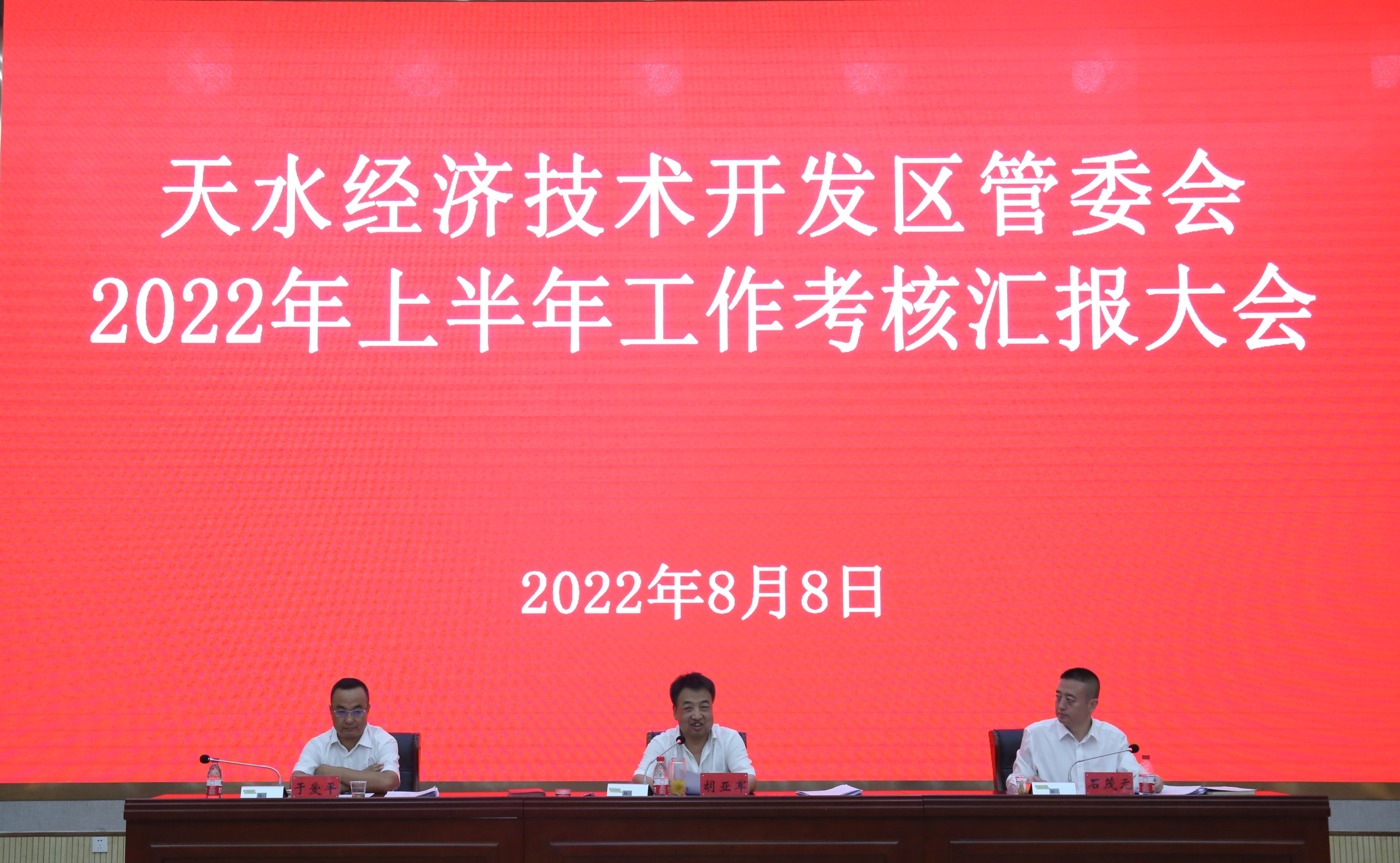 8月8日,天水经开区召开2022年上半年工作考核汇报会。经开区党工委书记、管委会主任胡亚军出席会议并讲话。管委会副主任石茂元主持会议。经开区领导班子成员、调研员、县级干部,各部门、单位、派驻机构全体干部职工以及兴阳建设公司、经济发展公司、投资公司、融资担保公司中层以上职工参加了会议。