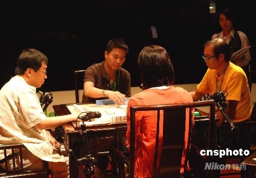 为期三天的第二届“世界麻将大赛”二十一日在澳门进入最后一天的“决战”,来自香港、台湾和日本的选手进入前八名。图为争夺前四名的比赛。中新社发毕永光 摄