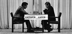 现年58岁的卡尔波夫和46岁的卡斯帕罗夫均是国际象棋界家喻户晓的棋王。1984年9月9日,卡尔波夫和卡斯帕罗夫在莫斯科开始了他们之间的第一次棋王争夺赛。当时比赛规定先胜6盘者为胜,和棋不计分。当年33岁的卡尔波夫面对棋坛新人卡斯帕罗夫的挑战,毫不手软,在头27盘棋中他一口气取得5胜22和佳绩,当时外界都看好卡尔波夫必胜无疑。然而战况急转直下,卡斯帕罗夫在之后的21盘棋内3胜18和,顽强地将双方比分拉近至3比5。在经过总计48盘对局之后,“双卡”仍不分胜负。
