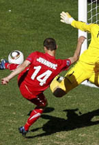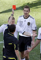 搜狐体育讯 北京时间6月18日19:30,南非世界杯D组第二轮的比赛,在伊丽莎白港纳尔逊-曼德拉海湾球场,德国队延续了以往大赛第二场比赛表现欠佳的老毛病。在长时间里10人应战的情况下,0-1憾负塞尔维亚队。第36分钟,克洛泽在防守时吃到第两张黄牌被红牌罚下。仅仅1分钟后,塞尔维亚就由约万诺维奇取得进球。此后,赫迪拉劲射打中横梁,波多尔斯基下半场又错失点球良机。塞尔维亚也两次打中德国队的门柱。