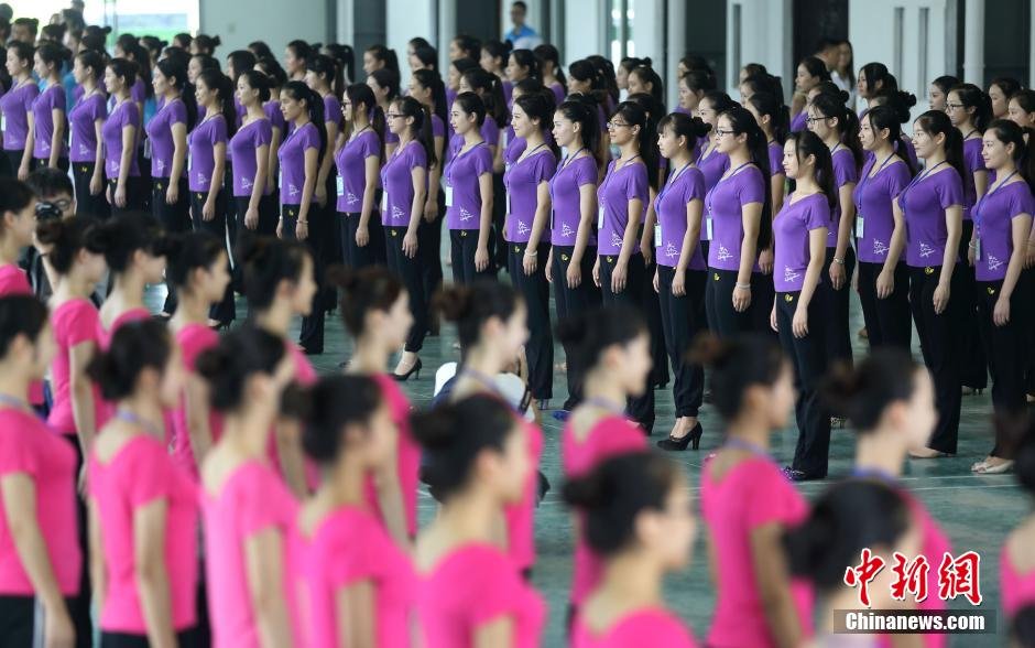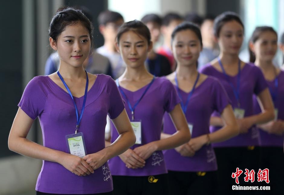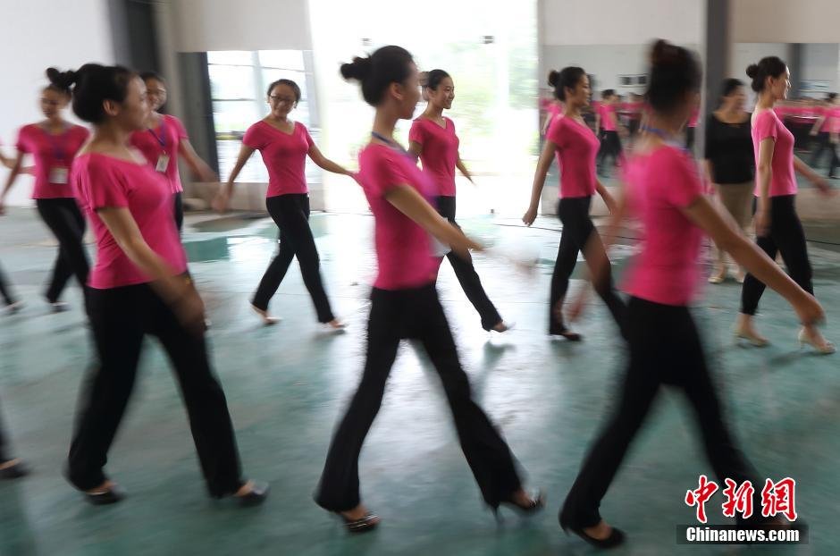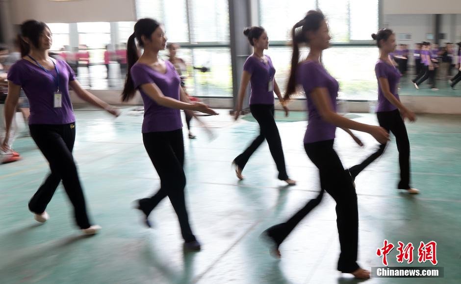 7月13日,2014南京青奥会礼仪志愿者们在进行训练。中新社发 泱波 摄