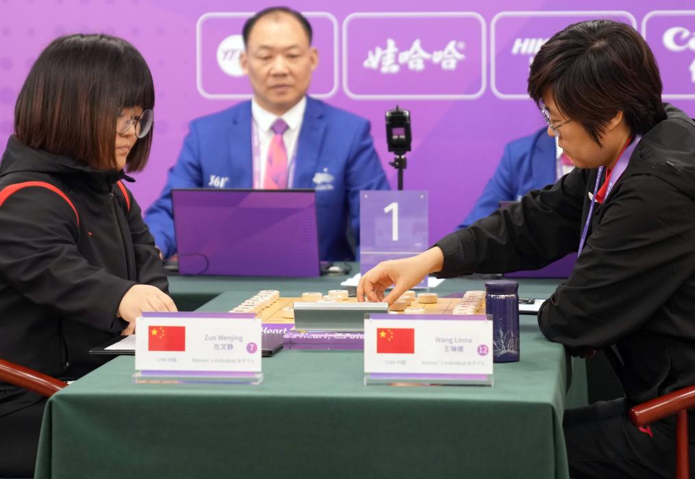 象棋男、女个人赛决赛均是中国选手间的“内战”。女子比赛中,左文静战胜王琳娜夺冠。男子比赛中,郑惟桐击败赵鑫鑫夺金。