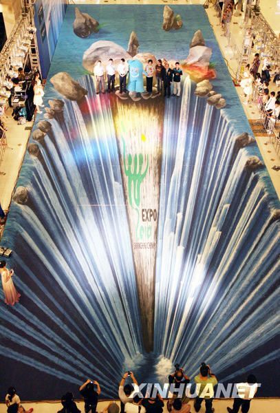| 核心提示:8月5日,一幅巨型3D立体画在上海静安区梅龙镇广场亮相。这幅以2010年上海世博会为主题的3D立体画由世界3D立体画大师埃德加·米勒精心打造。画面以湍急的瀑布为背景,极富视觉冲击力,整幅画的面积达300平方米。