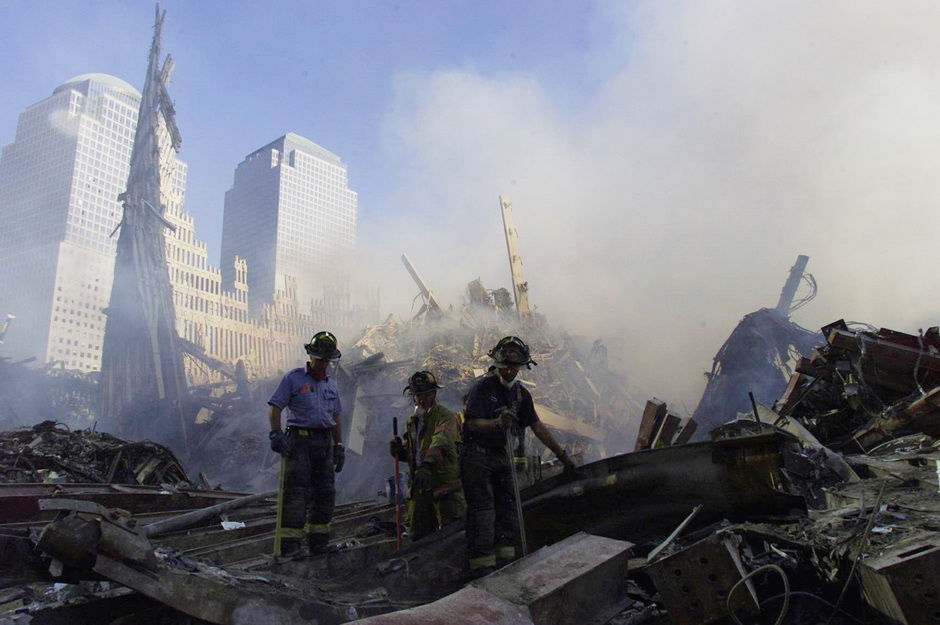 2001年9月13日,已经成为一片废墟的世贸大厦。