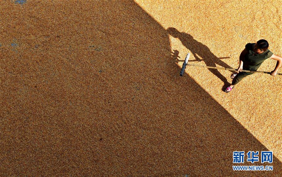 8月26日,贵州省遵义市凤冈县新建镇太河村村民在晾晒玉米。 新华社发(罗星汉 摄)