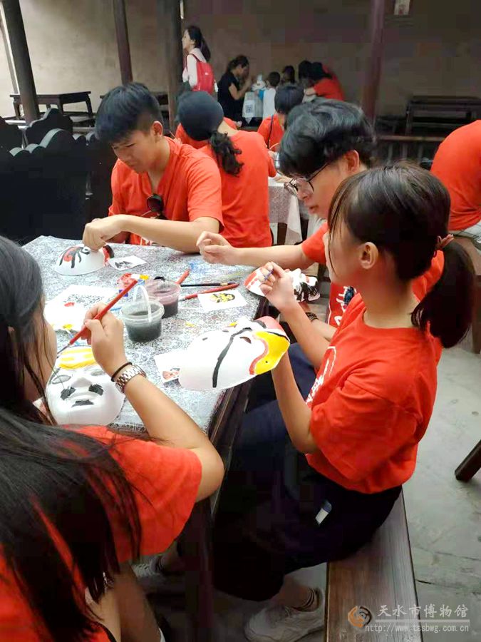 脸谱,是中国传统戏曲演员脸上的绘画,艺人们通过在演员面部勾画一定的彩色图案,以显示剧中人物的性格和特征,脸谱作为秦腔中的重要艺术表现手段,体现了中国优秀文化的古老传承。天水民俗博物馆是西北民居民俗文化的博览园,馆内现设有“鸿盛社秦腔脸谱”专题常设展览。为弘扬传统文化,发挥博物馆公共教育职能,8月12日至18日,该馆与兰州大学文化学者天水鸿盛社西秦腔脸谱制作团队合作,在天水民俗博物馆戏苑举办了“画在脸上的艺术”——鸿盛社西秦腔脸谱绘制体验系列社教活动,让秦腔脸谱文化走进了更多人的生活。