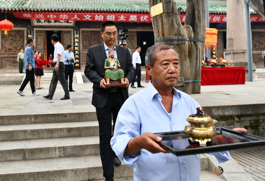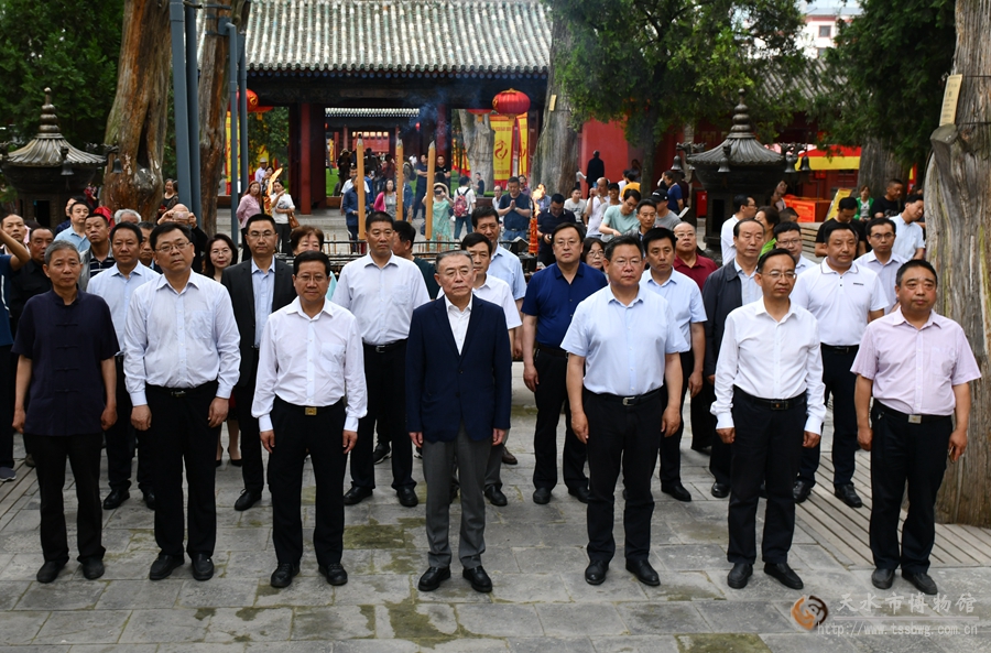 6月18日,天水市在伏羲庙举行向台湾三重先啬宫赠送中华人文始祖太昊伏羲圣像启程仪式,省政协副主席、市委书记王锐等领导出席活动。