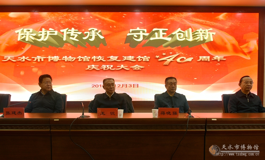 12月3日,天水市博物馆恢复建馆40周年庆祝大会隆重召开,省政协副主席、市委书记王锐等领导出席会议。同日,“守正·创新——天水市博物馆恢复建馆40周年成果展”开展。