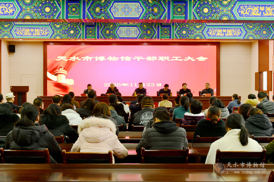 11月23日上午,天水市博物馆召开干部职工大会。会上,市文化和旅游局二级调研员魏国柱宣布了市委关于博物馆主要领导的任职决定。市文化和旅游局党组书记、局长、二级巡视员李玉进出席会议并讲话。市博物馆在家班子成员及全体干部职工参加会议。