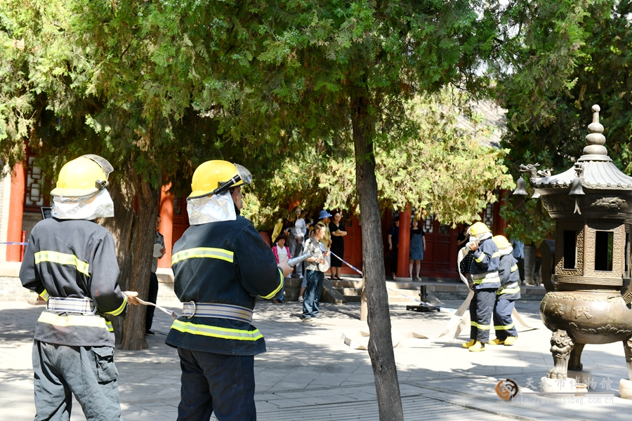三是应急疏散演练。现场工作人员听到警报后,立即把大殿及展厅的游客按照就近快速的原则疏散到了安全地带。