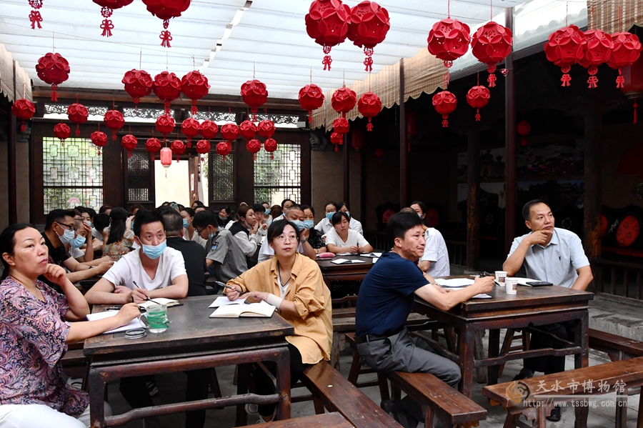 为进一步提升全馆职工的业务技能,增强民俗博物馆全体职工对文物保护的知识储备,理解和掌握文物保护的基本方法和技巧,更好地履行好自身职责,深化学术研究,推动文物活化利用,守护好、传承好中华文明优秀成果,真正落实“保护文物、人人有责”的文物保护理念,使古老文物焕发新的活力,天水民俗博物馆于8月22日开展了《胡氏古民居建筑——南宅子彩绘保护修复》专题讲座,68名职工全部参加。