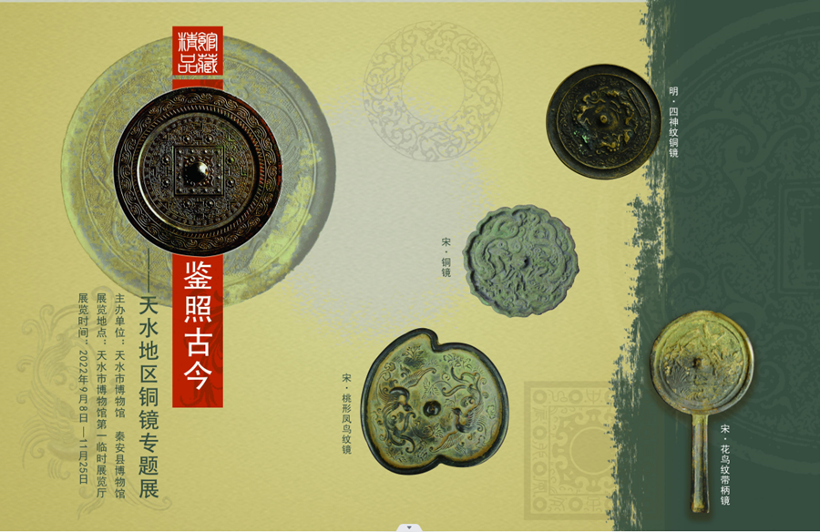 为了充分展示中华民族独特的审美意识、价值取向以及中国人民自古以来对美好生活的向往和追求,深刻揭示中华文化的广泛影响力,天水市博物馆将于2022年9月8日至11月25日举办“鉴照古今 ——天水地区铜镜专题展”,展览地点位于天水市博物馆第一临展厅。
