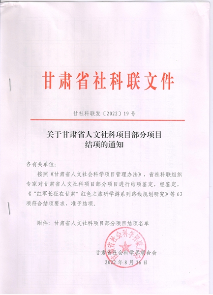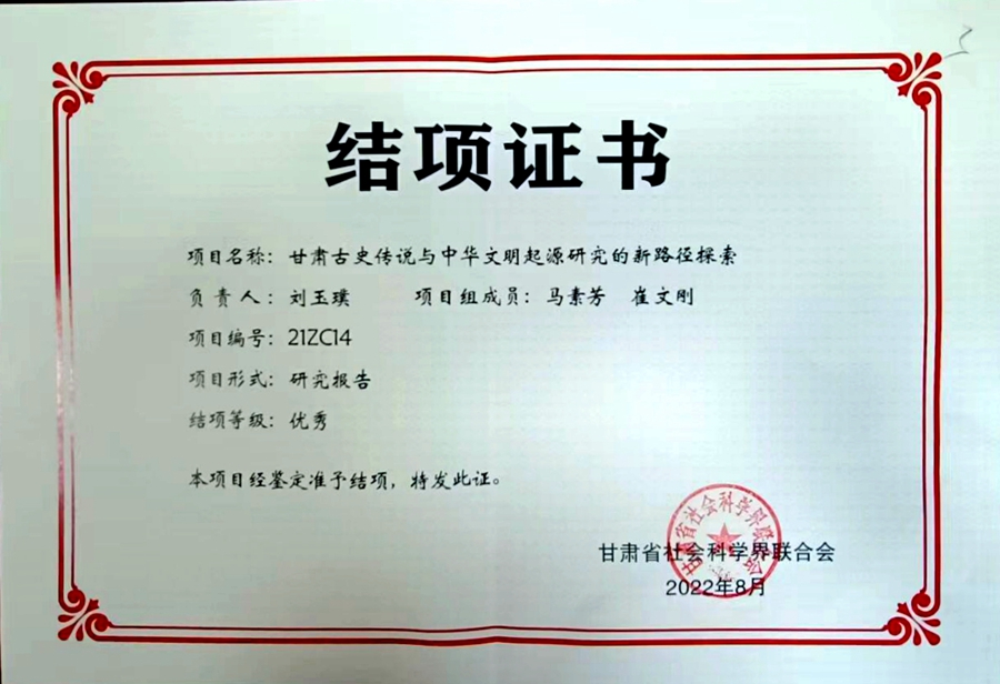 一年来,“甘肃古史传说与中华文明起源研究的新路径探索”课题组的成员们在时间紧、任务重的情况下克服各种困难,现场考察、查阅资料、探讨分析,对结项成果多次打磨完善,完成了三万八千字的结项报告,在省级刊物发表了《伏羲文化对探索中华文明起源的意义》的论文,最终通过顺利结项并评优,同时根据专家的建议向省政府提交了《资政报告》,对于促进研究成果的转化利用具有积极的推动作用。