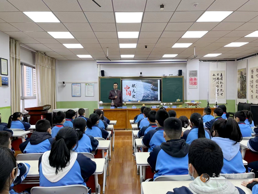 10月13日下午,天博宣教团队带着航天模型和中国航天史宣讲课程走进逸夫实验中学,社会服务部主任许凤、陈列展览部主任马优努斯分别介绍了天水市博物馆航天科普教育项目的内容及引进展览《金塔问天——趣味航天文化展》的陈列展品;宣教员郭雪雅通过PPT课件为同学们详细介绍了我国两弹一星、问天探月及载人航天科技、国防导弹系统的发展历程,从远古问天神话,到文学作品《天问》;从中国航天之父钱学森的赤子归国路到载人航天员的太空逐梦行,同学们在宣教员的带领下,仔细聆听中国航天人不畏艰辛、刻苦钻研,推动我国航天事业从无到有,从弱到强的奋斗故事。