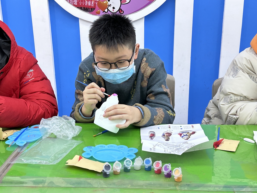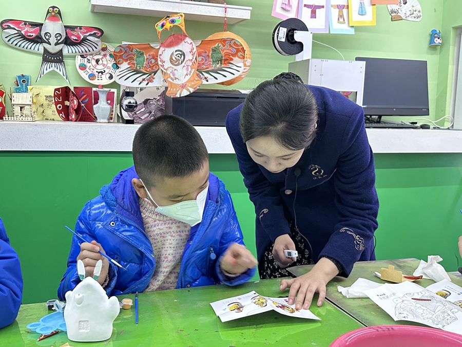 手工制作环节大家一起绘制非物质文化遗产中的“兔儿爷”。同学们发挥各自的想象力将“兔儿爷”装扮的五彩斑斓,栩栩如生。