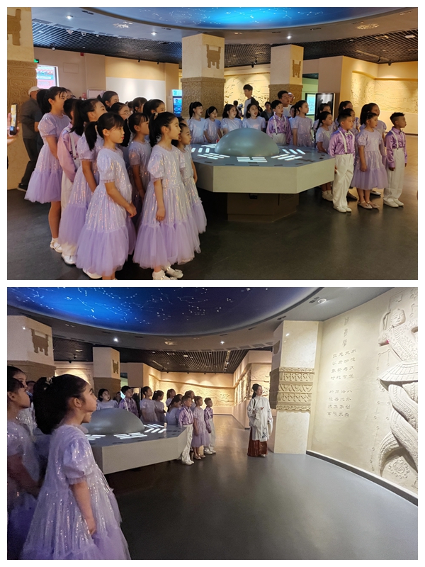 在2023年公祭伏羲大典来临之际,天水市实验小学的同学们走进伏羲庙,与天水市博物馆联合开展了“祭拜人文始祖 弘扬伏羲文化”公祭大典宣传活动。