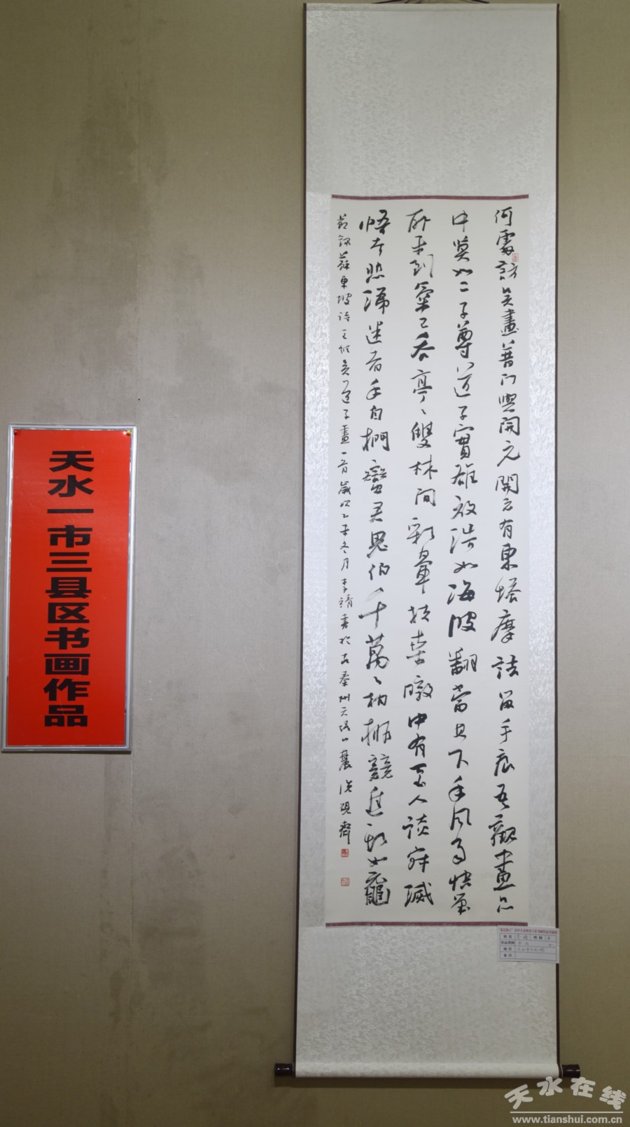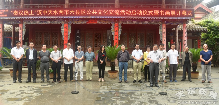 7月12日上午9:30,由汉中市文化广电新闻出版局、天水市文化和旅游局主办、天水市文化馆、汉中市群艺馆、勉县文化馆、宁强县文化馆、略阳县文化馆、秦州区文化馆、清水县文化馆、张川县文化馆联合承办的“秦汉热土”汉中--天水两市六县区书画联展暨公共文化交流活动拉开帷幕,书画巡展开幕仪式和公共文化交流活动启动仪式在天水市文化馆隆重举行。
