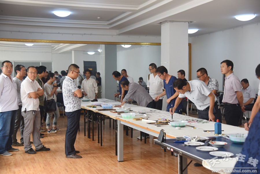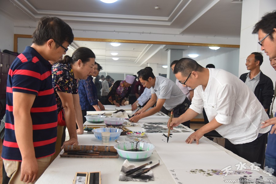 下午3点,在张川县文化馆举行两市六县区书画笔会。各地书画家们倾心书画艺术,用饱含深情的笔墨,一气呵成,笔走龙蛇,为现场群众创作了近100幅书画作品。大家相互品评,互相交流,现场创作气氛浓厚。这次笔会活动为两地书画艺术家提供了难得的交流机会,展示了两地书画创作水平。