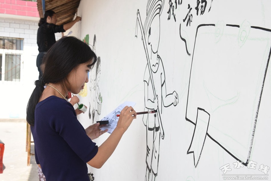 9月23日上午,天水市文化馆组织天水市农民书画研究会书画老师、馆内书画创作人员一行17人,赴双联点清水县贾川乡阳湾村开展书画惠民、绘制文化墙活动。