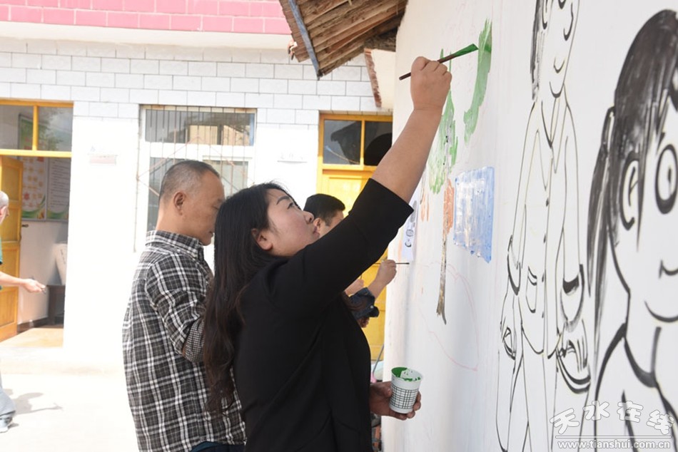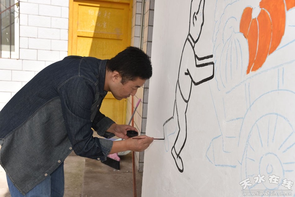 天水市文化馆组织人员赴双联点绘画文化墙(组图)