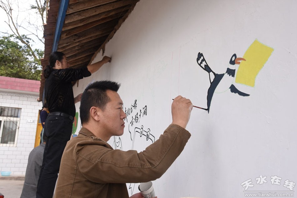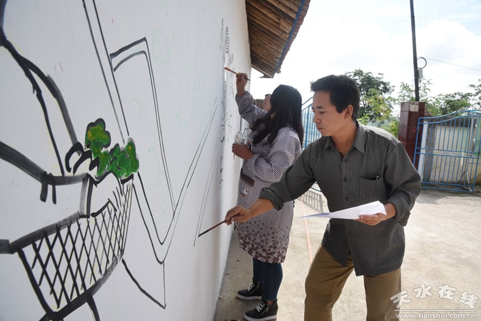 天水市文化馆组织人员赴双联点绘画文化墙(组图)