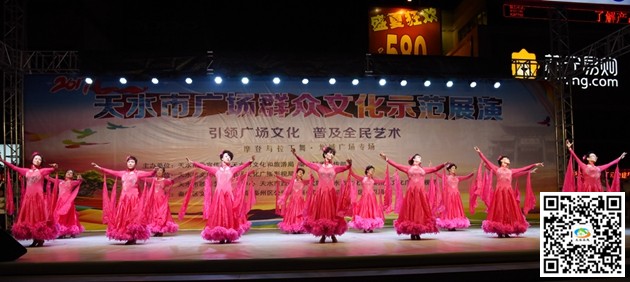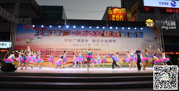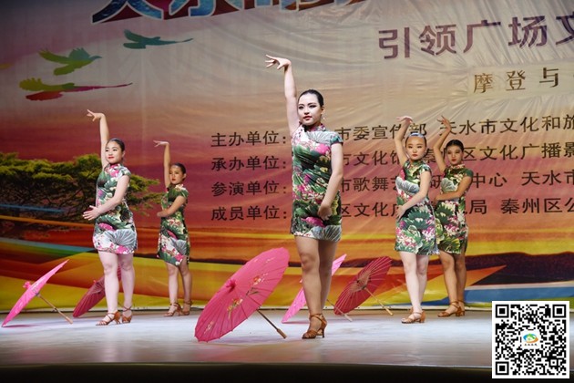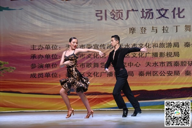 7月15日晚8:00,由天水市委宣传部、天水市文化和旅游局、天水市秦州区委宣传部主办,天水市文化馆、秦州区文化广播影视局承办的“天水市群众性广场文化示范展演”摩登舞拉丁舞专场在龙城广场精彩演出。
