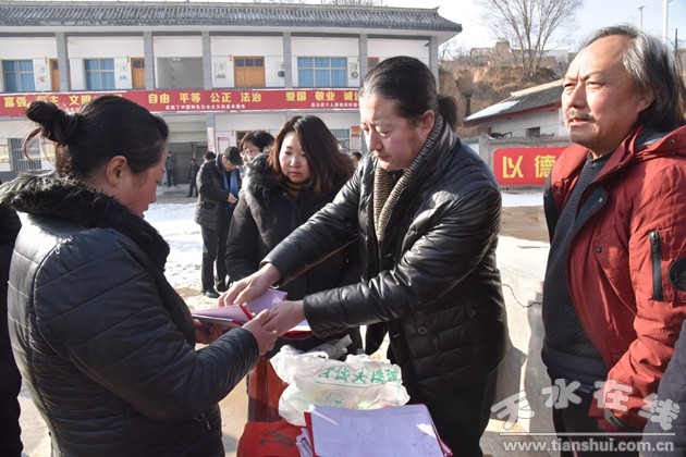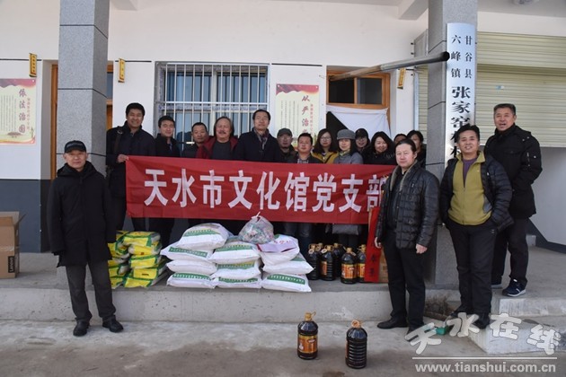 为了继续深化精准扶贫工作,保证贫困户和部分困难群众过一个欢乐、祥和、愉快的新春佳节,2月6日上午,市文化馆全体领导班子,中层干部,党员一行20人在党支部书记馆长李靖的带领下,冒着寒冷赶赴甘谷六峰镇张家窑扶贫点开展了“寒冬送温暖”春节慰问活动。