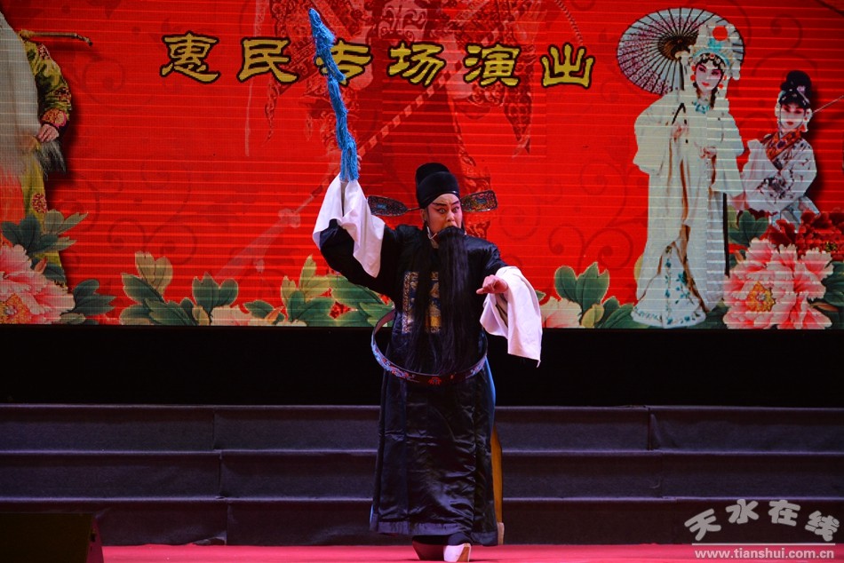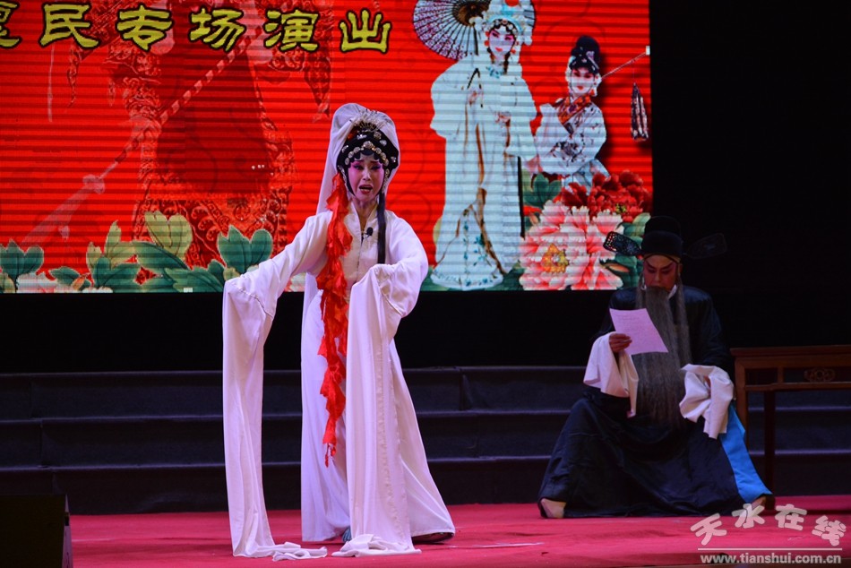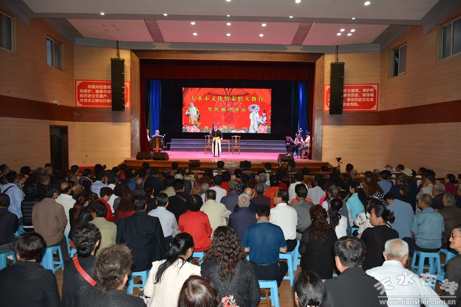 天水市文化馆秦腔艺术团组织天水市西秦腔艺术研究院、国家二级演员李秋芳、张鹿娃、胡雪梅,麦积区秦剧团、国家二级演员焦婵丽,天水市当红小生、非遗传承人李爱琴弟子贺小慧以及我馆历届戏曲票友大赛秦腔获奖得主、麦积区秦剧团优秀青年演员王兴平,天水师院大学生石俊杰、高圆圆等新秀演员组成强大演出阵容,相继表演了《杀狗劝妻》、《窦娥冤-托梦》、《周仁回府-哭墓》、传统历史剧折子戏《杨廉悔路》、秦腔清唱《周仁回府-夜逃》、《砍门槛》等著名选段。