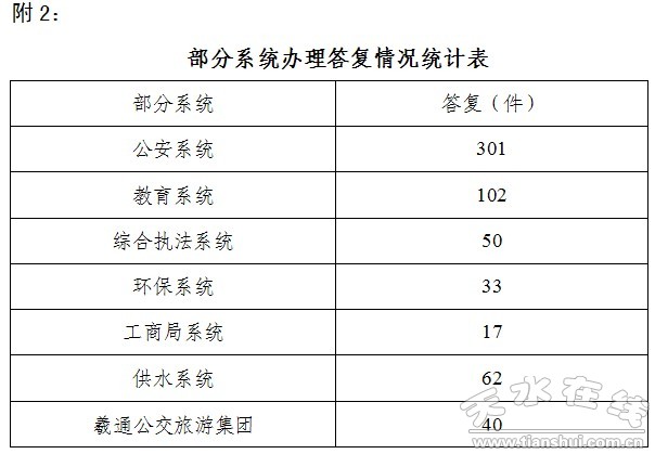 2、全市部分系统办理答复情况统计表