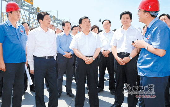 (8月19日,王三运、刘伟平带领全省新建项目现场观摩团在白银市进行项目观摩考察。这是观摩白银公司铜冶炼技术提升改造工程。)