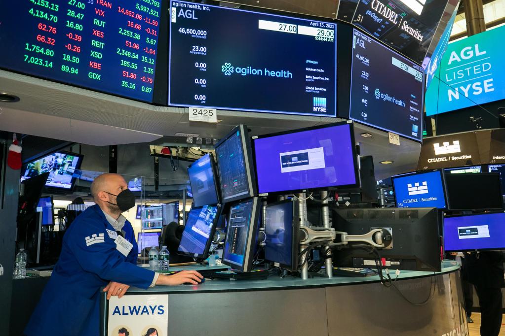2021年4月15日,交易员在纽约证券交易所工作。新华社发(纽约证券交易所供图)