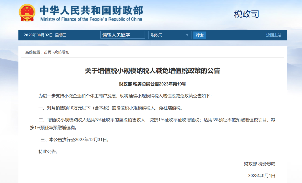 为进一步支持小微企业和个体工商户发展,现将延续小规模纳税人增值税减免政策公告如下: