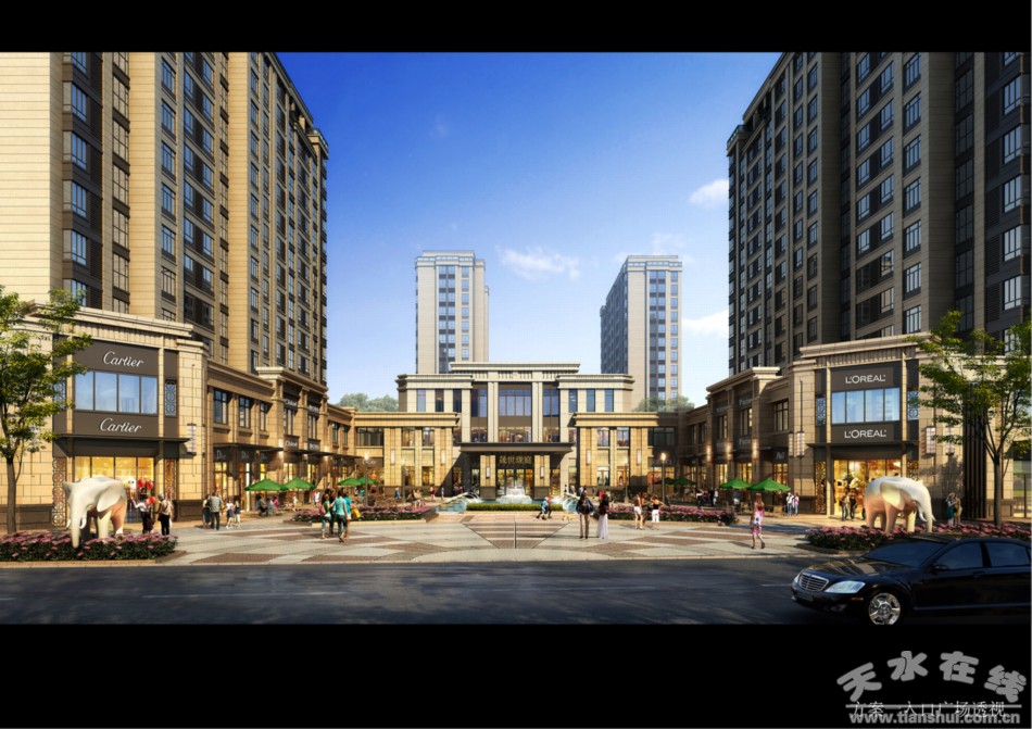 晟世珑庭项目在小区中庭部位通过下沉式处理,在天水首次引入下沉式园林景观广场,结合高差近6米的人工水景水幕(瀑布)、近400米中庭环形廊道、丰富多样的社区内部配套、植物的五层立体搭配(大乔木、小乔木、灌木、花卉、草坪),营造立体式、层次感较强的园林景观效果,以实现园林景观从不同角度欣赏,视野决然不同的观景效果。