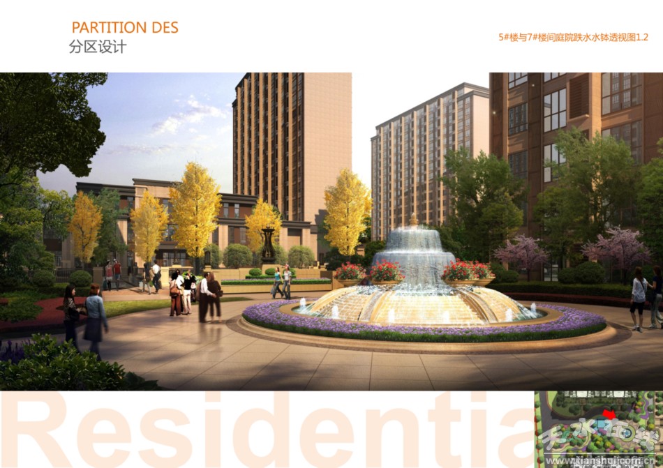 甘肃蜀兰锦筑景观设计公司结合天水当地气候特点,紧密结合项目规划及建筑的实际特点,在上海同济开元建筑设计公司规划方案的基础上,结合项目下沉式广场的设计特点,在项目中庭园林景观的南侧设置了高差近六米的人工瀑布,在小区其他区域多处设置了点状水景,通过瀑布、喷泉、涌泉、跌水等营造晟世珑庭多样化的水景形态。