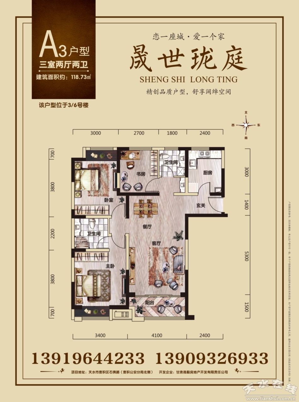 甘肃晟毅房地产开发有限责任公司成立于2007年,近几年来开发区域主要集中在兰州、陇西、武山和天水,累计开发面积已超过100万平方米,晟世珑庭项目是晟毅房地产公司进入天水市场的第一个房地产项目,将本着“开发一流楼盘、建设一流小区、打造一流环境、提供一流服务、开展一流工作、创办一流公司”的开发宗旨,与国内众多知名商家强强联合,将晟世珑庭项目打造成为麦积区一道亮丽的风景线,一处园林景观优美的幸福宜居社区。