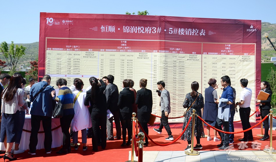 恒顺·锦润悦府,是恒顺地产砥砺十载,倾力打造的城市之上公园大宅,以改变天水人居标准的雄心,于成纪新城中央地段,藉河天然水景畔,匠造一处城市级中央公园,循法新古典主义法则,全球甄选高质建材,于公园之中落座瞰景美宅。而此次开盘的3号楼和5号楼两大景观楼座,也正是恒顺·锦润悦府两大楼王作品,兼具丰富的园林景观资源和高端配套,凝聚着恒顺地产的非凡匠心,;此次楼王开盘的火热场面,不仅是对一种作品的肯定,也是对恒顺地产信赖的有力印证。