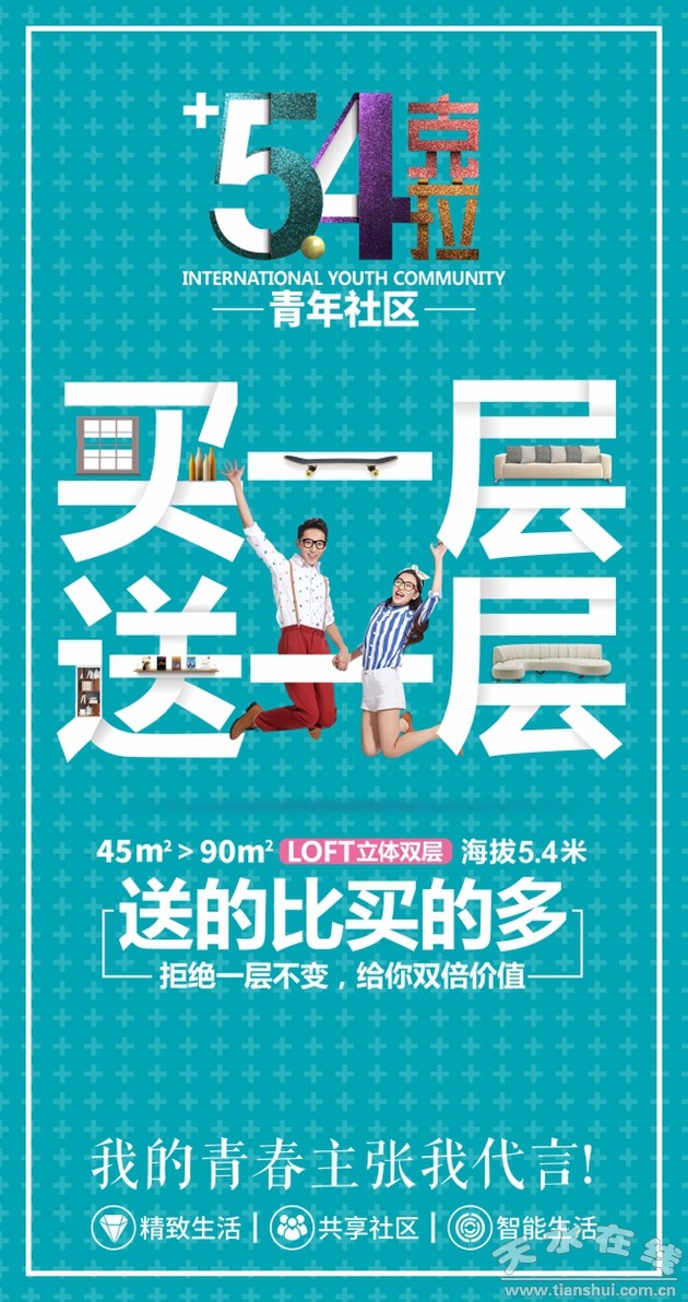 更自由、更青春、更共享,这便是年轻人所追求的生活方式,毕竟谁都不愿意生活变得死气沉沉,所以,打破常规,切实改变年轻人生活方式,双层复式LOFT产品必然会成为未来房地产发展的趋势。而就目前的天水房地产市场来看,类似于+5.4克拉这样的共享青年社区还是非常稀缺的,在不断探索与追求更高标准的过程中,我们有理由相信,+5.4克拉将会以业内领航者的姿态,重新定义并引领天水青年时尚生活新潮流。