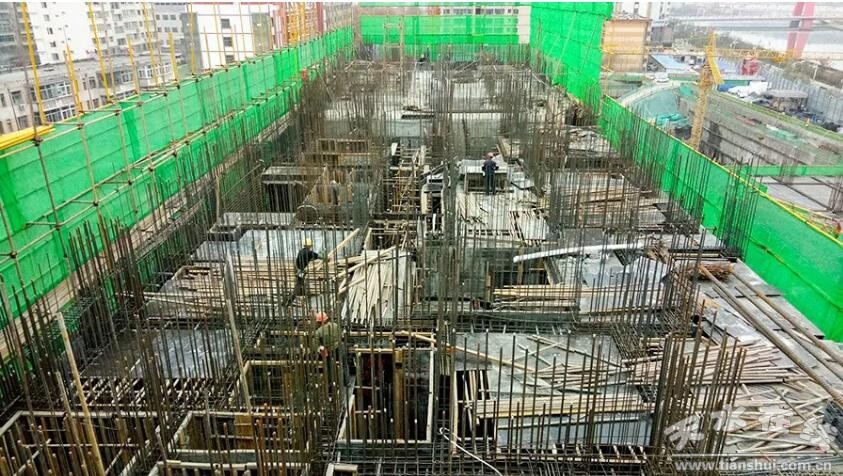 东单元四层,剪力墙、柱钢筋绑扎,模板制作。