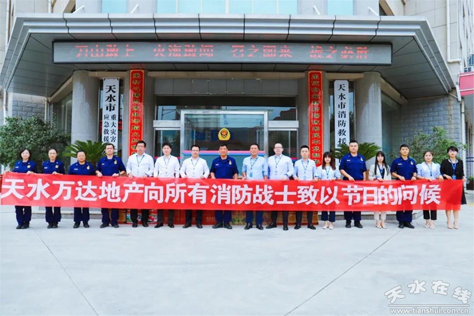 在“八一”建军节来临之际,7月31日天水万达地产开发有限公司总经理刘志勇一行在政委李延奇的陪同下,来到天水市消防支队向消防战士送去节日的祝福及慰问品,感谢天水市消防支队对天水万达地产的支持与指导,并向长期奋战在防火、灭火、救援一线的消防战士致以最崇高的敬意和节日的问候!